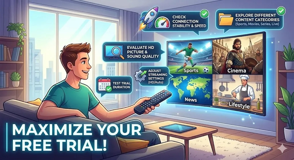 What is an hd iptv free test? An hd iptv free test is a risk-free trial period that allows you to evaluate live TV streaming, VOD content, and overall server quality on your preferred device before committing to a full subscription.