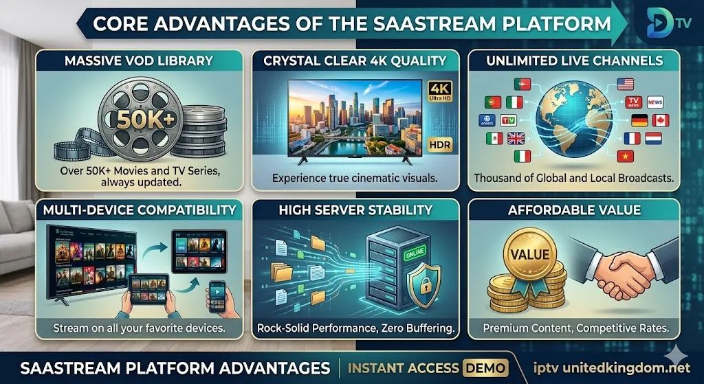 If you are searching for a premium, uninterrupted entertainment experience, securing an Instant Access SaaStream Demo: Explore 50K+ VOD is the definitive first step. Modern consumers no longer have to settle for restrictive cable contracts or limited streaming libraries. Instead, the transition to Internet Protocol Television provides unparalleled freedom, and initiating an instant access iptv demo allows you to verify the quality of the service before making any financial commitment. By utilizing a free trial, you can immediately test server stability, picture clarity, and content variety. We highly recommend visiting SaaStream today to claim your instant free IPTV trial and discover exactly how superior streaming technology can transform your daily viewing habits.